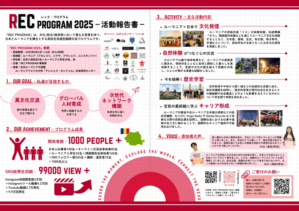 REC PROGRAM 2025では、日本人高校生が12日間にわたって現地を訪問し、